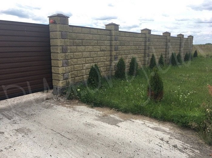 Оптимальный выбор по цене, качеству и надежности. Особенно выигрышно выглядит ограждение из клинкера. Самое бюджетное решение – конструкция из белого или красного кирпича. Долговечность последнего напрямую зависит от правильности кладки и качества цемента.