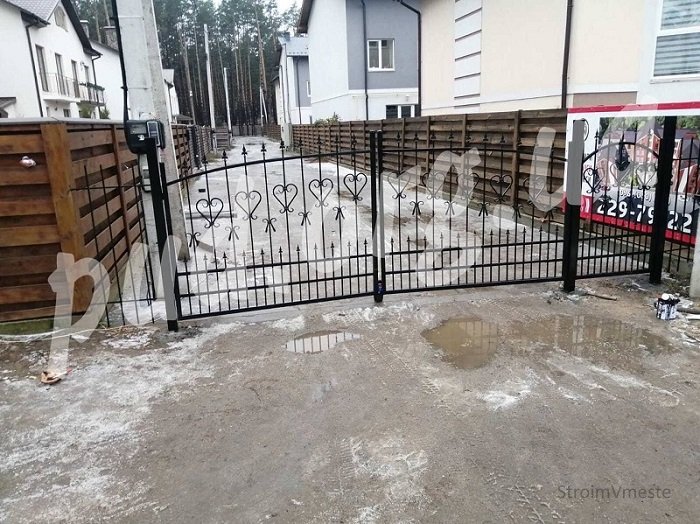 Минус кованых ограждений – высокая стоимость. Кроме того, они не способны обеспечить защиту от посторонних взглядов. Чтобы избежать нежелательного вмешательства в частную жизнь, кованые элементы зашиваются поликарбонатом или профнастилом. Еще один вариант – создание живой изгороди из вечнозеленых растений для ограничения просмотра придомовой территории.Профнастил
