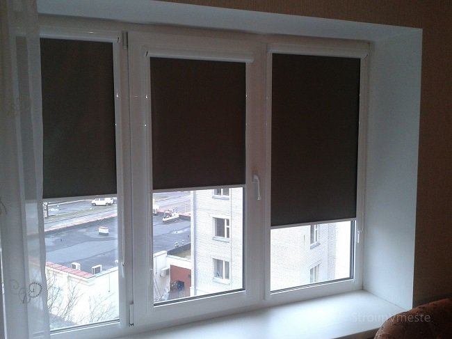 Главное преимущества такого варианта – практичность. Шторы, собранные в рулон, крепятся в верхней части створки. В зависимости от особенностей помещения, можно подобрать изделия из плотной ткани, не пропускающей солнечные лучи или остановиться на полупрозрачной материи, которая мягко рассеивает свет.