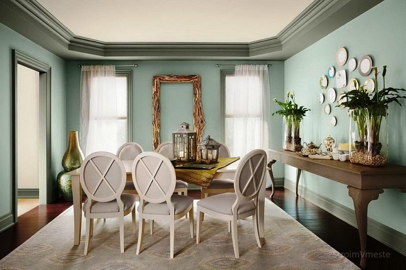 Интерьер, выполненный в базовых тонах (серебристом, бежевом, персиковом) быстро приедается. Для его «разбавки» идеально подходят аксессуары в цвете Тиффани. Это может быть обивка мягкой мебели, плед, осветительные приборы, рамки для фото или гардины.Для «освежения» дизайна необязательно делать новые приобретения. Достаточно внести в интерьер небольшие изменения, чтобы он «заиграл» яркими красками. Например, окрашивание комода преобразит старый гарнитур. «Бабушкина» софа – отличный арт-объект (при условии, что она хорошо сохранилась). Чтобы подарить ей «вторую жизнь», достаточно поменять старую обивку на ярко-бирюзовую. Деревянные элементы требуется покрыть свежим лаком.