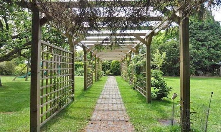 Перголы из дерева выглядят очень естественно. Живой материал способствует активному росту растений. Рекомендуется использовать твердые породы древесины наподобие кедра или лиственницы, чтобы придать конструкции долговечность. Деревянная пергола станет идеальным решением для сада в английском стиле.