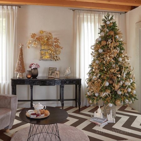 Если не можете определиться с выбором стиля, то используйте все имеющие украшения, чтобы встретить грядущий праздник всеми цветами радуги. Для придания интерьеру стильности необходимо равномерно распределить яркие акценты по помещению и не злоупотреблять одним цветом.