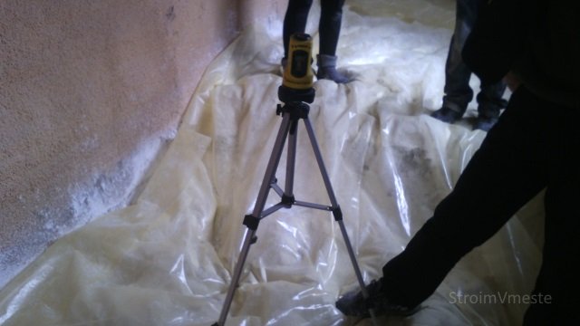 На этом этапе нужно быть особенно внимательным. Для начала следует найти точку, расположенную выше всех. Чтобы быть уверенным в точности расчетов, рекомендуется использовать нивелир.